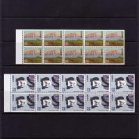 ペーンの例・・・印刷面はシートで販売されたものと同じ。10枚で構成されている。写真は1991年に発行されたふるさと切手の岩手山(岩手県)と阿波の木偶人形(徳島県)