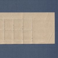 裏面のアップ 上部に水滴状の糊落ち、左下にヒンジ跡(画像クリックで拡大表示)